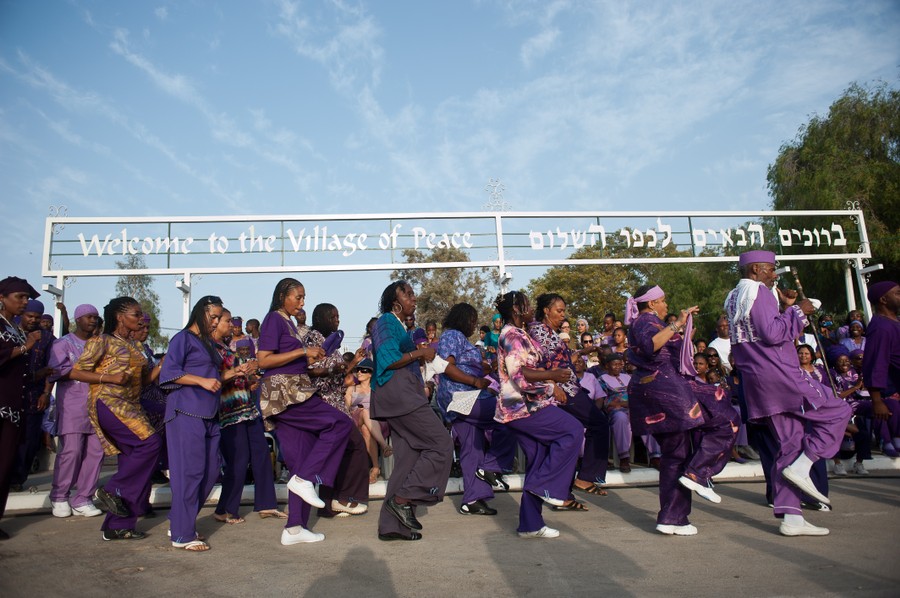 New World Passover Celebration of The African Hebrew Israelites of Jerusalem.The African Hebrew Israelites of Jerusalem are comprised of approximately 2,000 men, women and children residing in three development towns - - Dimona, Arad and Mitzpe Ramon - - in southern Israel. They arrive in Israel in 1969 and since then they maintain a vibrant culture which includes a communal lifestyle, a vegan diet, a system of preventive health care and high moral standards. They belive in the Torah and in poligamy marriages. This celebration commemorate the day they went out of Chicago to Liberia, and the to the Holy Land.